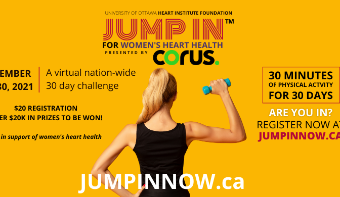 Ottawa JUMP IN™ FOR THE HEARTS YOU LOVE! A virtual nation-wide 30-day challenge to encourage you to get moving in your own space and at your own pace, in support of women’s heart health across Canada. Raising funds and awareness for the heart health of the women we love. IT’S ALL ABOUT JUMPING IN That’s right, jumping in to your […]