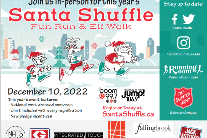 Ottawa VIRTUAL EVENT Event Info Date: Saturday, December 5 – 12, 2020 Pre-Event Date: Saturday, December 5, 2020 Virtual Opening Ceremony: Facebook.com/SantaShuffle Time: 12:00 p.m. EST Contests: SANTA SHUFFLE 2020 NATIONAL CONTESTS This year, The Salvation Army in Canada (“The Salvation Army”) in partnership with The Running Room Ltd. (“The Running Room”) will be hosting five national […]