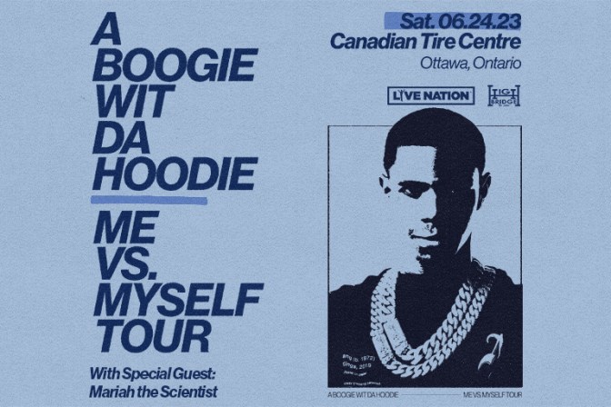 Canadian Tire Centre, 1000 Palladium Dr, Ottawa, ON, K2V 1A5, Canada A BOOGIE WIT DA HOODIE ANNOUNCES MORE CANADIAN DATES FOR HIS “ME VS MYSELF” TOUR NYC BRED, MULTI-PLATINUM SUPERSTAR PREVIOUSLY SOLD-OUT TORONTO’S COCA COLA COLESIUM AND IS BACK WITH 8 MORE STOPS ACROSS CANADA WITH MARIAH THE SCIENTIST LIVE NATION PRE-SALE STARTING MARCH 23 AT 10AM LOCAL TIME PUBLIC ON-SALE STARTING MARCH 24 AT […]