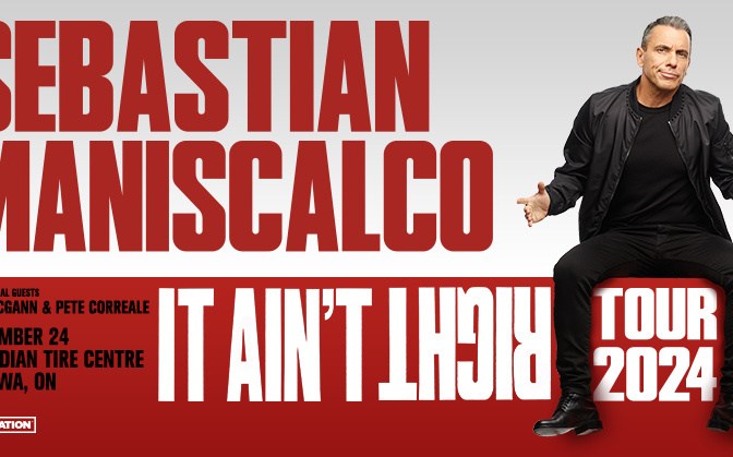 Canadian Tire Centre, 1000 Palladium Dr, Ottawa, ON, K2V 1A5, Canada Comedian, actor, and podcast host Sebastian Maniscalco has announced his 2024 ‘It Ain’t Right’ Tour, featuring a performance in Ottawa at Canadian Tire Centre on Sunday, Nov. 24, 2024. Produced by Live Nation, the 47-city tour, his biggest tour to date, kicks off on July 11 at Norfolk Scope Arena in Norfolk, Va. making stops across North America in […]